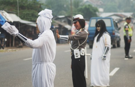 Foto Kuntilanak Dan Pocong Mengatur Lalu Lintas | Download Gambar